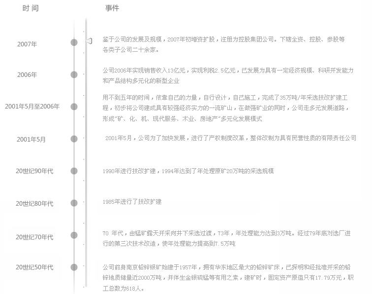 近20多年,通过两次重大技术改造、国有企业改制和企业转型升级三个发展阶段,已由单一的资源型企业,发展成为“有色金属采选业、高新制造业、现代服务业”三大板块为一体的企业集团,经济总量、整体效益、职工收入水平有了较大幅度增长。